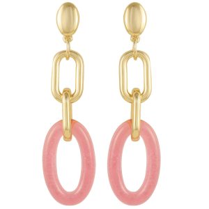 Goldtone Pink Candy Interlocking Drop Earrings