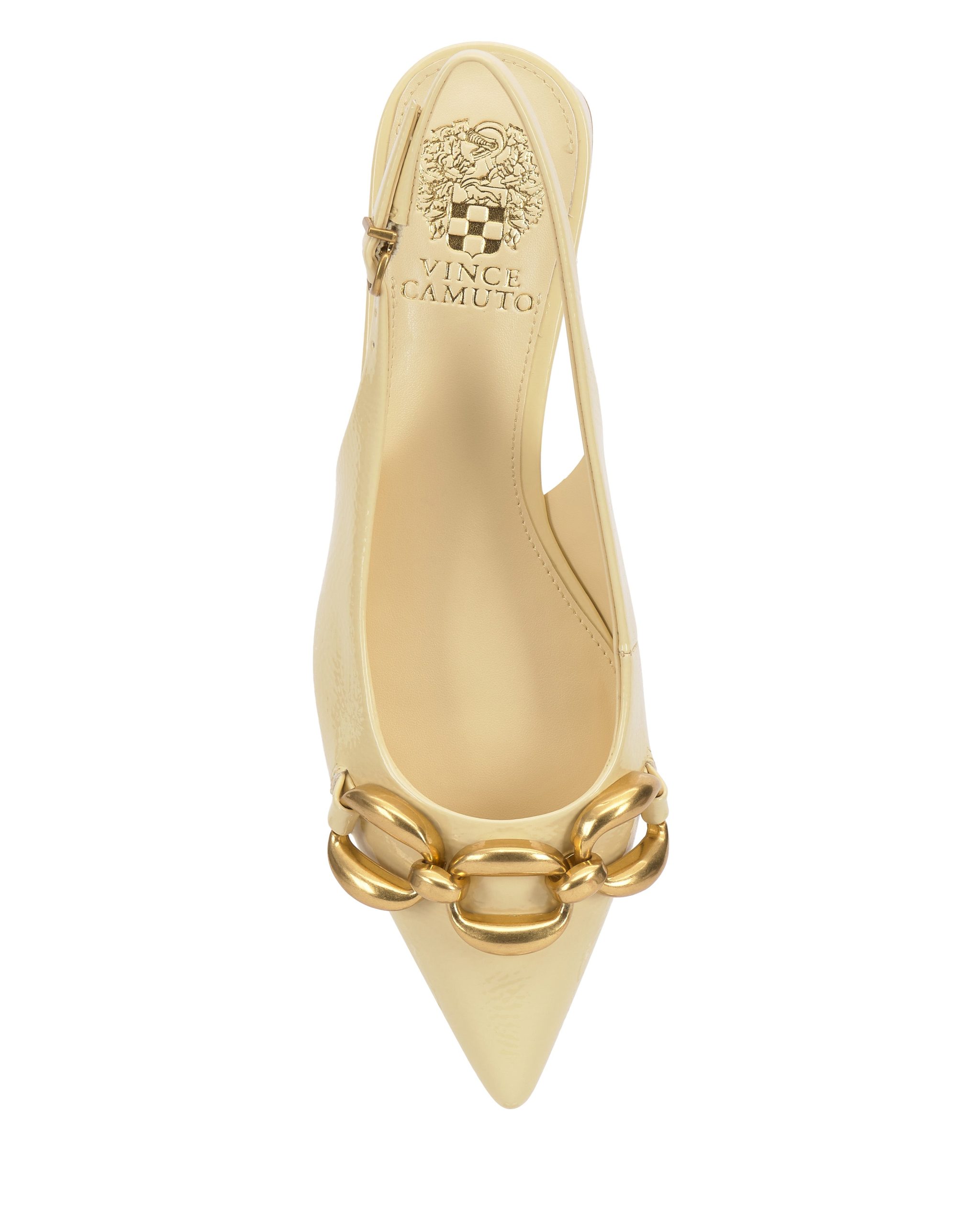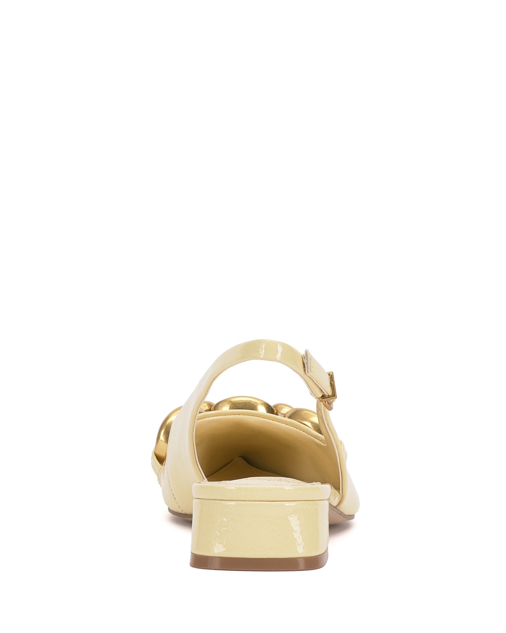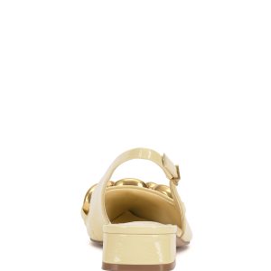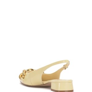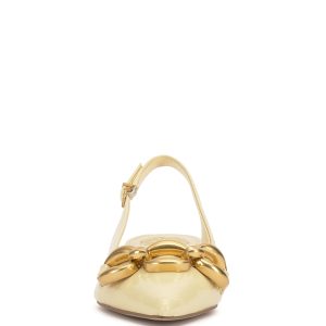 Featuring an oversized chain accent and low block heel. the Valiey pump stands out in your slingback collection. The sharp pointed toe adds a fierce finish to this pair.
