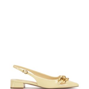 Featuring an oversized chain accent and low block heel. the Valiey pump stands out in your slingback collection. The sharp pointed toe adds a fierce finish to this pair.